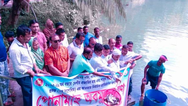 মুকসুদপুরে দেশীয় প্রজাতীর পোনা মাছ অবমুক্তকর এবং শামুক সংরক্ষণ ও উন্নয়ন অনুষ্ঠান অনুষ্ঠিত। সাইদুর রহমান টুটুল মল্লিকঃ আমিষেই মুক্তি” এই প্রতিপাদ্যকে সামনে রেখে গোপালগঞ্জের মুকসুদপুরে, মুকসুদপুর মৎস কার্যালয় কর্তৃক দেশীয়