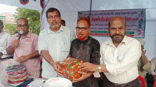 মুকসুদপুরে গ্রীষ্মকালীন ক্রীড়া প্রতিযোগিতার পুরস্কার বিতরণ মুকসুদপুর (গোপালগঞ্জ) প্রতিনিধিঃ গোপালগঞ্জের মুকসুদপুরে বাংলাদেশ জাতীয় স্কুল, মাদ্রাসা ও কারিগরি শিক্ষা ক্রীড়া সমিতির আয়োজনে গ্রীষ্মকালীন ক্রীড়া প্রতিযোগিতা ও পুরস্কার বিতরণ অনুষ্ঠিত হয়েছে। “সুস্থ