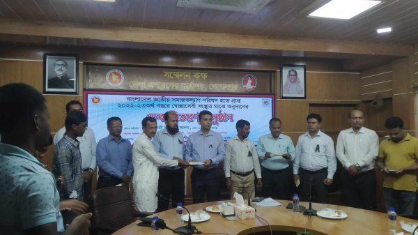 গোপালগঞ্জে বাংলাদেশ জাতীয় সমাজকল্যাণ পরিষদ হতে প্রাপ্ত, ২০২২-২৩ অর্থবছরে, স্বেচ্ছাসেবী সংস্থার মাঝে অনুদানের চেক বিতরণ করা হয়েছে। ২১ আগস্ট (সোমবার) সকাল ১১ টায়, জেলা প্রশাসকের স্বচ্ছতা সম্মেলন কক্ষে, জেলা প্রশাসক