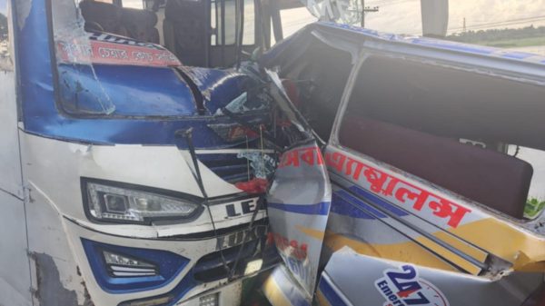 মুকসুদপুরে সড়ক দুর্ঘটনায় নিহত – ১আহত -৭ মুকসুদপুর( গোপালগঞ্জ) প্রতিনিধি গোপালগঞ্জের মুকসুদপুরে যাত্রীবাহী বাস ও অ্যাম্বুলেন্সের মুখোমুখি সংঘর্ষে এক জন নিহত হয়েছে। শুক্রবার ( ১৫ আগষ্ট) দুপুরে দিগনগর ইউনিয়নের জোয়ারিয়া