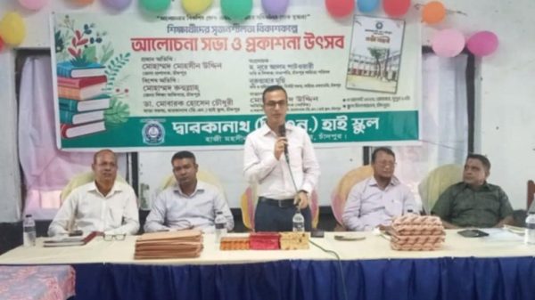 দ্বারকানাথ (ডি. এন.) হাই স্কুলে দেয়ালিকা ও স্মারক উন্মোচন, শিক্ষার্থীদের সৃজনশীলতা বিকাশে আলোচনা সভা ও পুরস্কার বিতর জেলা প্রতিনিধি(চাঁদপুর): “আলোচনায় বিকশিত হোক মনন, প্রকাশনায় প্রতিফলিত হোক সৃজন” এই প্রতিপাদ্য কে