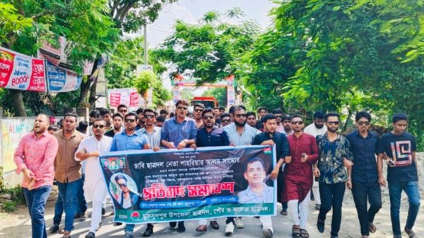 মুকসুদপুরে ঢাকা বিশ্ববিদ্যালয়ের মেধাবী ছাত্র সাম্য হত্যার প্রতিবাদে বিক্ষোভ মিছিল মেহেদী মুন্সি ঃ ঢাকা বিশ্ববিদ্যালয়ের মেধাবী শিক্ষার্থী , স্যার এ এফ রহমান হল শাখার সাহিত্য ও প্রকাশনা সম্পাদক, শাহরিয়ার আলম