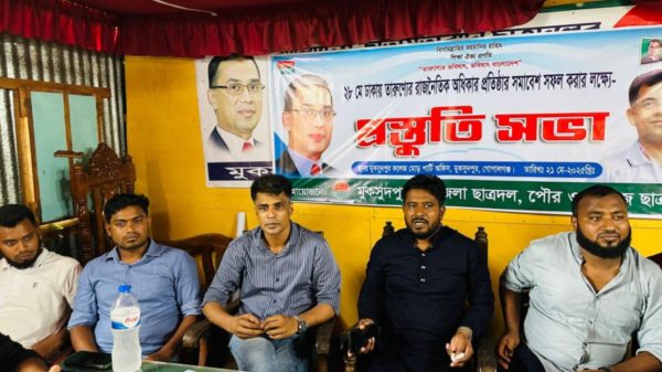 মুকসুদপুরে ছাত্র দলের প্রস্তুতি সভা অনুষ্ঠিত মেহেদী মুন্সি ঃ ২৮ মে ঢাকায় তারুণ্যের রাজনৈতিক অধিকার প্রতিষ্ঠার সমাবেশ সফল করার লক্ষ্যে মুকসুদপুরে ছাত্রদলের প্রস্তুতি সভা অনুষ্ঠিত হয়েছে। ২১ মে বুধবার তারুণ্যের