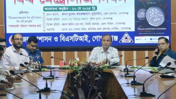 গোপালগঞ্জে নানা কর্মসূচির মধ্যদিয়ে বিশ্ব মেট্রোলজি দিবস পালিত গোপালগঞ্জ প্রতিনিধিঃ গোপালগঞ্জে বিশ্ব মেট্রোলজি দিবস -২০২৫ পালিত হয়েছে। দিবসটি উপলক্ষে মঙ্গলবার (২০ মে) সকালে গোপালগঞ্জ জেলা প্রশাসকের সম্মেলন কক্ষ “স্বচ্ছতা’য় আলোচনা