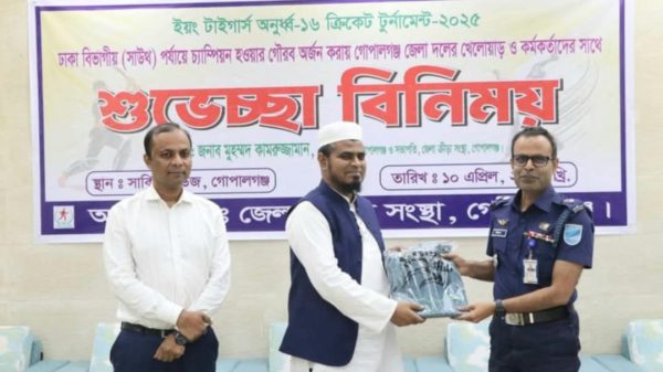 ইয়ং টাইগার্স ক্রিকেট টুর্নামেন্টে গোপালগঞ্জ জেলা চ্যাম্পিয়ন হওয়ায় জেলা প্রশাসকের শুভেচ্ছা বিনিময় কে এম সাইফুর রহমান, নিজস্ব প্রতিনিধিঃ ইয়ং টাইগার্স অনূর্ধ্ব-১৬ ক্রিকেট টুর্নামেন্ট ২০২৫ ঢাকা বিভাগীয় (সাউথ) পর্যায়ে গোপালগঞ্জ জেলা