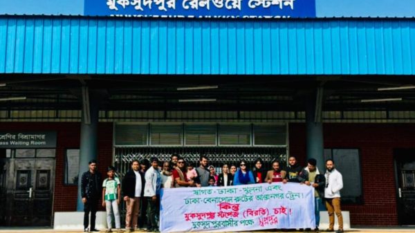 মুকসুদপুরে আন্তঃনগর ট্রেন স্টপেজ (বিরতি) দাবিতে বিভিন্ন রাজনৈতিক দলের মানববন্ধন কর্মসূচি পালন শহিদুল ইসলাম ঃ বেনাপোল-ঢাকা ও খুলনা-ঢাকা রুটে সম্প্রতি চালু হওয়া আন্তঃনগর জাহানাবাদ এবং রূপসী বাংলা ট্রেন দুটির গোপালগঞ্জের