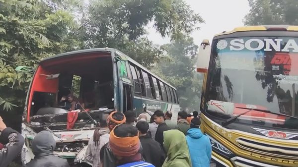 মাদারীপুরে দুই বাসের মুখোমুখি সংঘর্ষে আহত ১০, ঢাকা-বরিশাল মহাসড়কে যানজট আকাশ আহম্মেদ সোহেল, মাদারীপুর প্রতিনিধি: মাদারীপুরের রাজৈরে দুটি বাসের মুখোমুখি সংঘর্ষের ঘটনা ঘটেছে। এতে আহত হয়েছেন অন্তত ১০ জন। শনিবার (২১ ডিসেম্বর) দুপুরে ঢাকা-বরিশাল