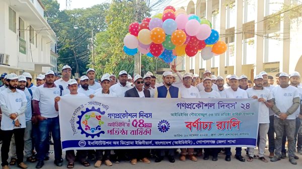 গোপালগঞ্জে র্যালী ও আলোচনা সভার মধ্যদিয়ে গণপ্রকৌশল দিবস ও আইডিইবি’র প্রতিষ্ঠা বার্ষিকী উদযাপন কে এম সাইফুর রহমান, গোপালগঞ্জঃ “বৈষম্যহীন কর্মক্ষেত্র — সময়ের দাবি” এই মূলনীতিকে সামনে রেখে গণপ্রকৌশল দিবস-২০২৪ ও