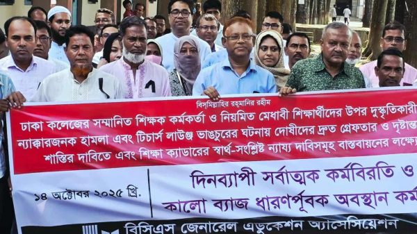ঢাকা কলেজে হামলার প্রতিবাদে মুকসুদপুর সরকারি কলেজে কর্মবিরতি ও কালো ব্যাজ ধারণ